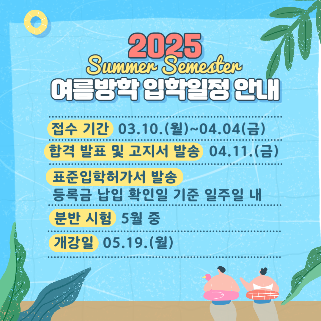 Notice(KLCE) 2025학년도 여름학기 입학일정 안내 한국어문화교육원관리자2025. 3. 7조회수1,461 2025학년도 한국어도우미 모집(…목록2025학년도 봄학기 한국어도우미…